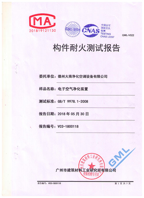 2018年5月,大商研發生產的中央空調電子空氣淨化器順利通過廣州市建築材料工業研究所有限公司產品構件耐火測試,並取得相應產品合格測試報告。 大商研發生產的中央空調電子空氣淨化器(高壓靜電除塵器),其作用是消除中央空調係統中顆粒物、微生物、xijunbingdudengduikongqizhiliangyouyingxiangdewuranwu。youyukongtiaoxiangjifengjipanguanzhongdehuanreqiduozaishigongkuangxiagongzuode,huishirukongtiaofengjipanguandeweishengwujinjindefuzaihuanreqibiaomianhejishuipanzhong。shidushiyishiweishengwudaliangfanzhi,dangjizuzaiciqidongshi,weishengwufanzhishengcundedaliangqiti、以及細菌、病毒在空氣中散發成氣溶膠,便隨氣流通過管道進入室內,使室內空氣品質惡化。安裝方式:有風管式、風盤式、風口式三種。